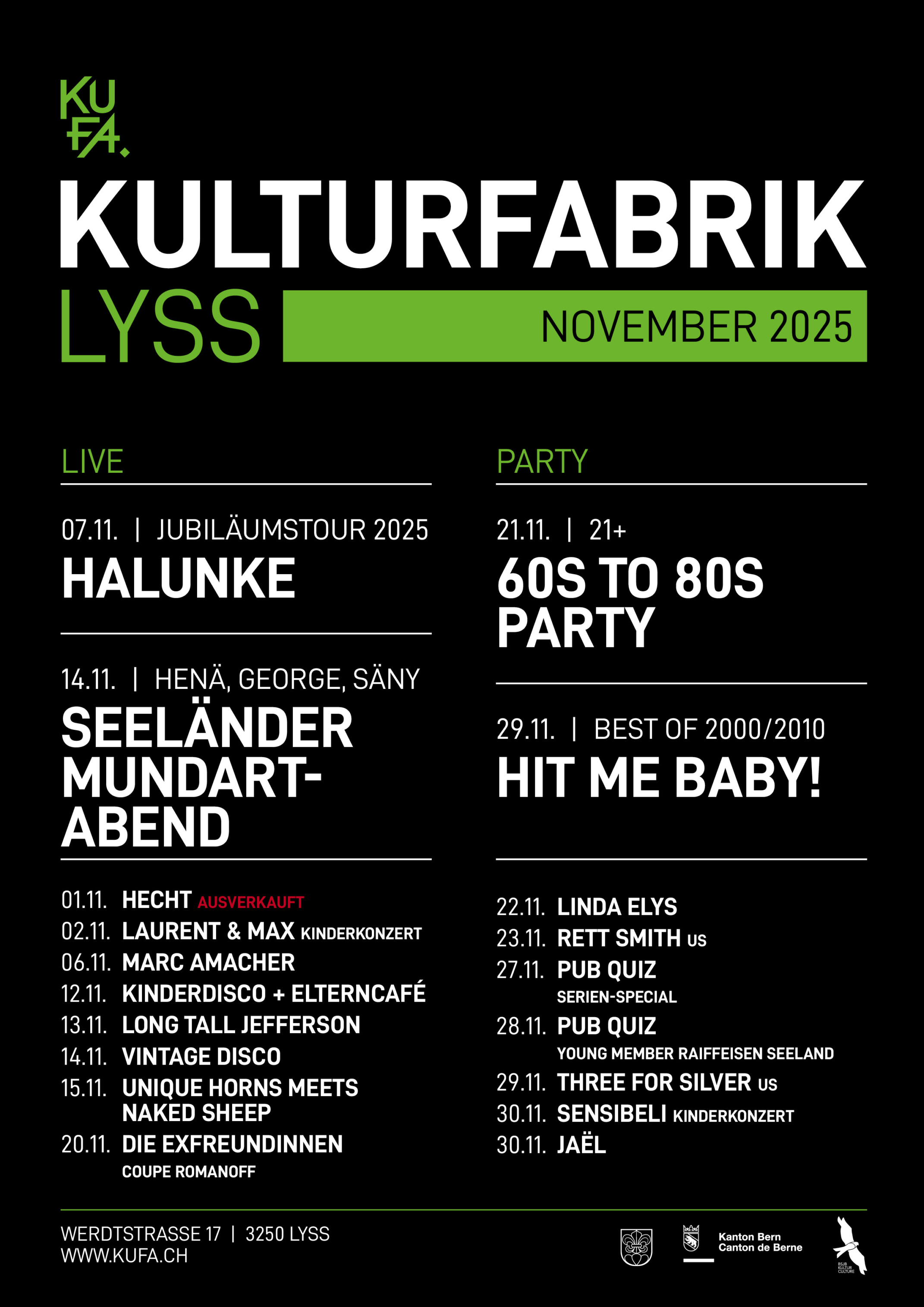 During my role as the lead for communication and graphic design at Kulturfabrik KUFA Lyss, I developed a completely new corporate design and laid the foundation for a consistent brand presence.